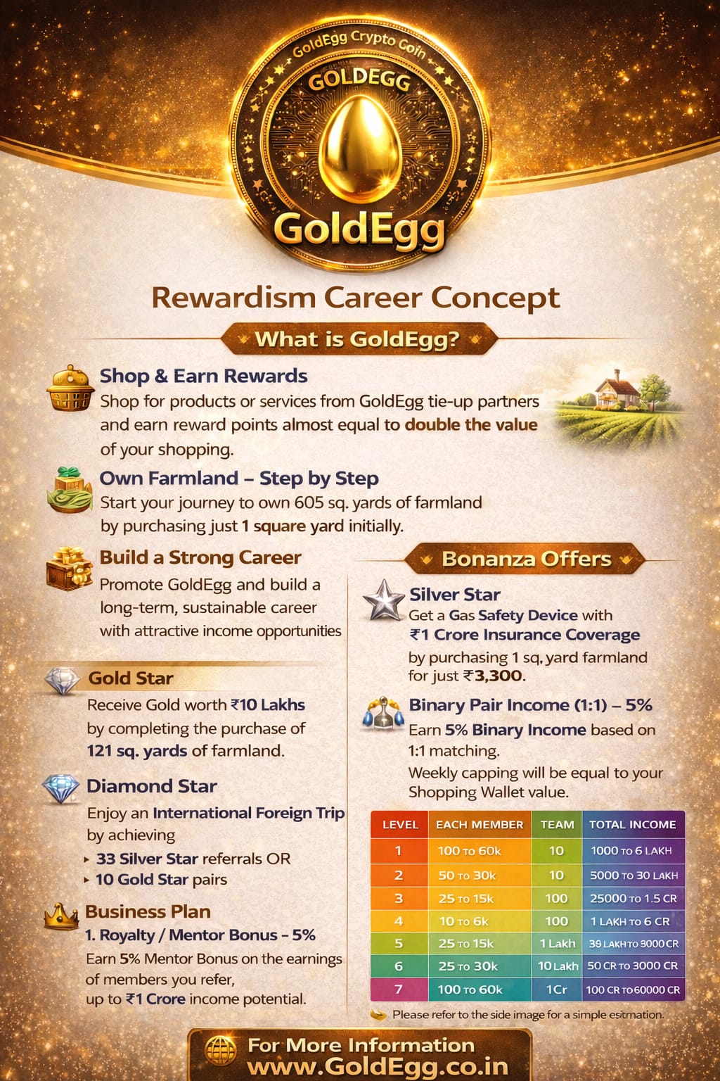 GoldEgg also provides a career opportunity where members can grow a network and earn additional income streams. This program allows individuals to expand their financial potential while building assets for the future.